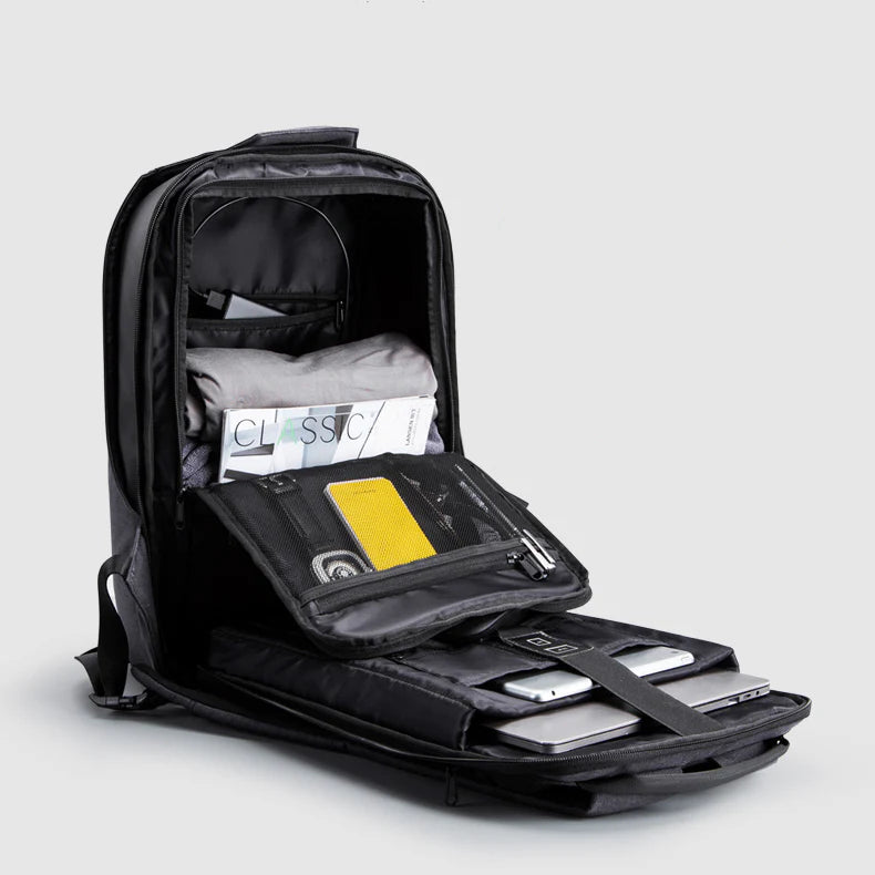 A Kingsons Secure laptop hátizsák fő rekesze 180 fokban nyitható így igen könnyen pakolható. Maga a fő rekesz is egy cipzáras válaszfallal van ellátva, hogy a tabletet és a laptopot teljesen szeparálni tudjuk. Ezeknek az eszközöknek vastagon párnázott zsebet is kialakítottak.