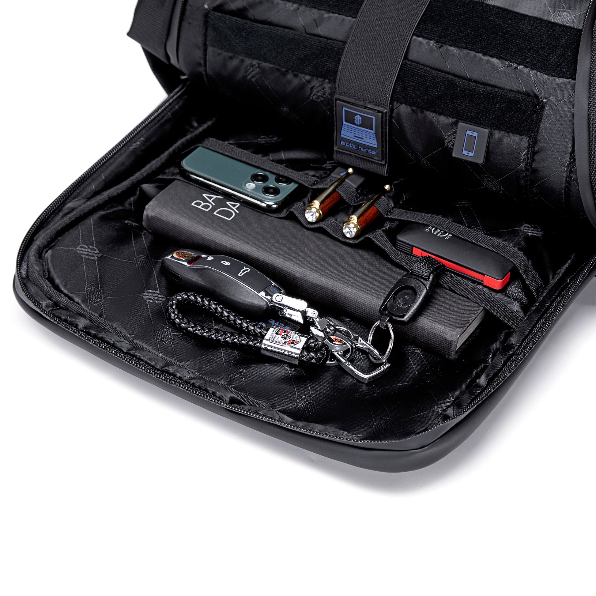 Az Arctic Hunter DailyPro egyetlen, jól kihasználható fő rekesszel rendelkezik, amelyben minden fontos eszköz biztonságosan és rendszerezetten elfér. A párnázott laptop- és tabletzseb megvédi az elektronikai eszközöket a mindennapi használat során, míg a több belső zseb, a tolltartók és a lecsatolható kulcstartó segítenek rendben tartani a kisebb kiegészítőket.