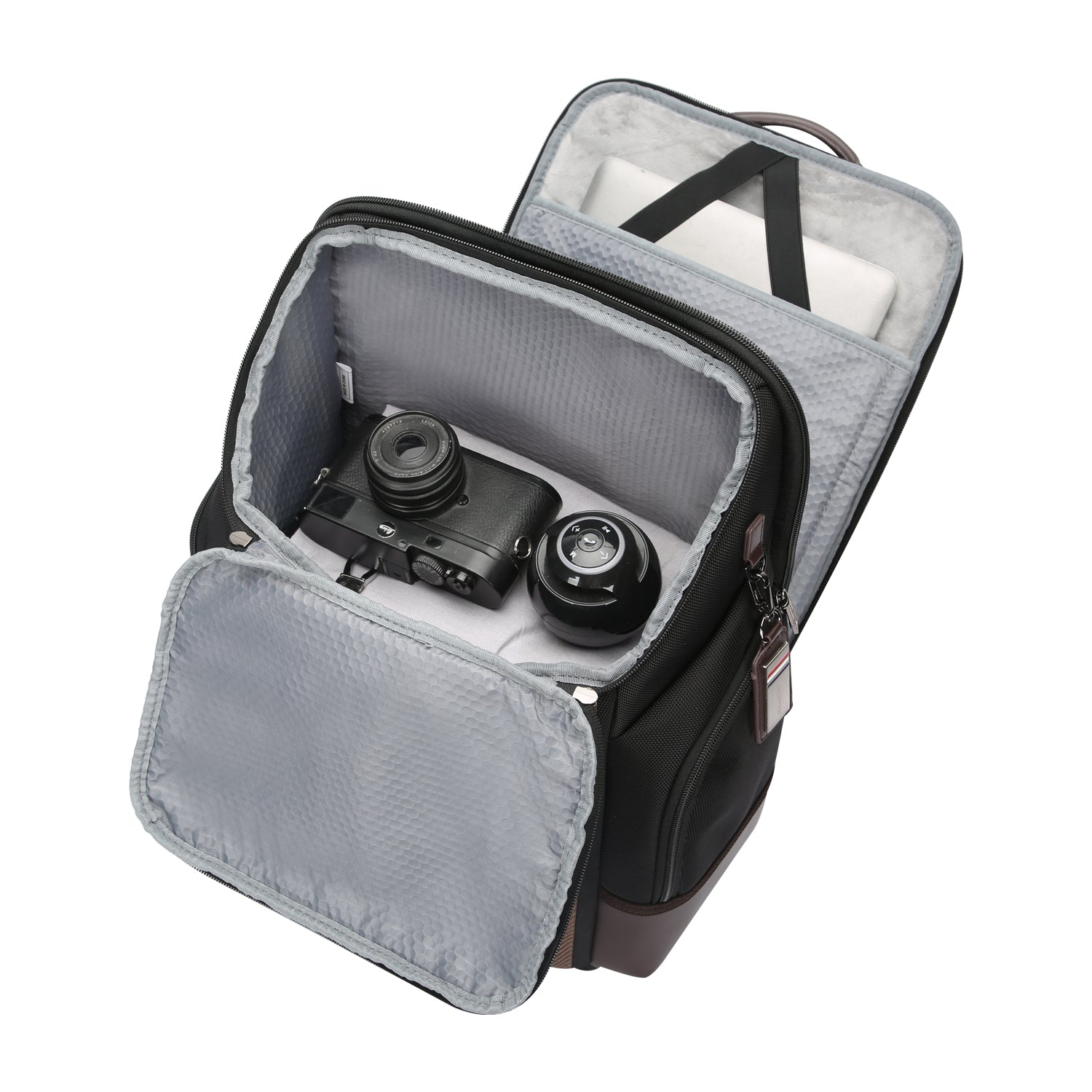 A táska két különálló fő rekesszel rendelkezik. Az első nagykapacitású, felülről nyitható tároló ideális ruhák, dokumentumok vagy kiegészítők számára. A hátsó rekeszben található egy plüssbéléssel ellátott, biztonságos laptopzseb, amely akár 17”-os készüléket is képes fogadni. A rekesz 180 fokban nyitható, így a laptop könnyen hozzáférhető.