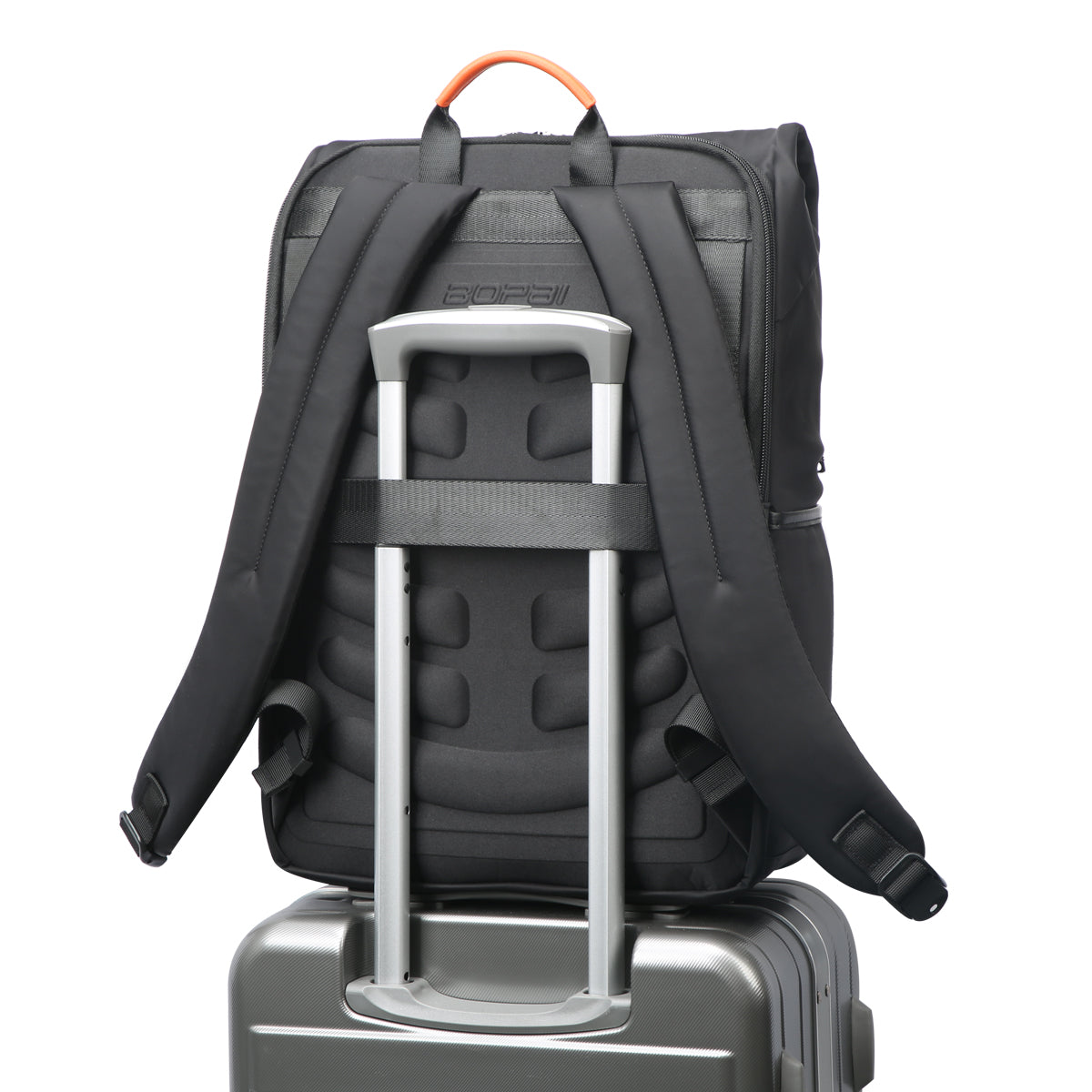 A Bopai Axis hátizsák kiváló minőségű nylon és poliészter kombinációjából készült, amely könnyű, mégis rendkívül tartós. A letisztult fekete megjelenést az innovatív csat és a rejtett cipzárak teszik igazán modernné és kifinomulttá.