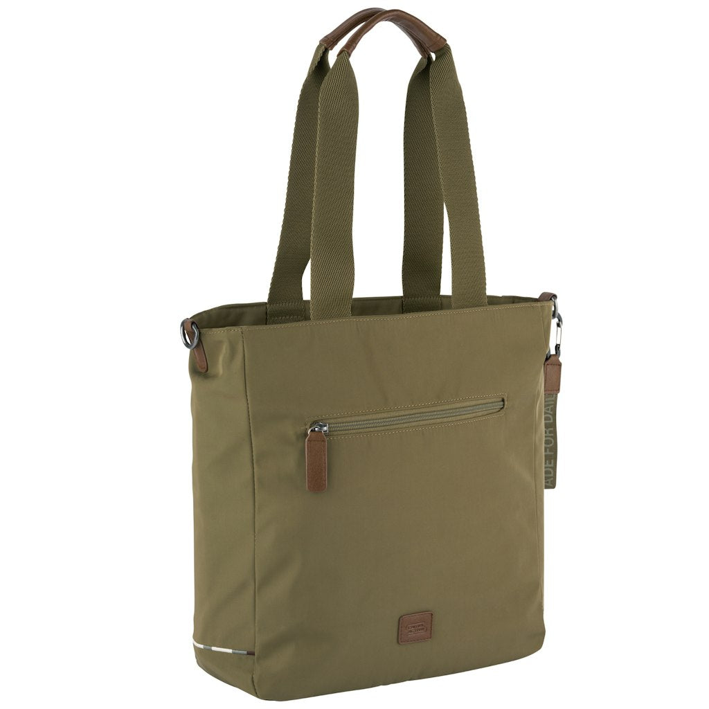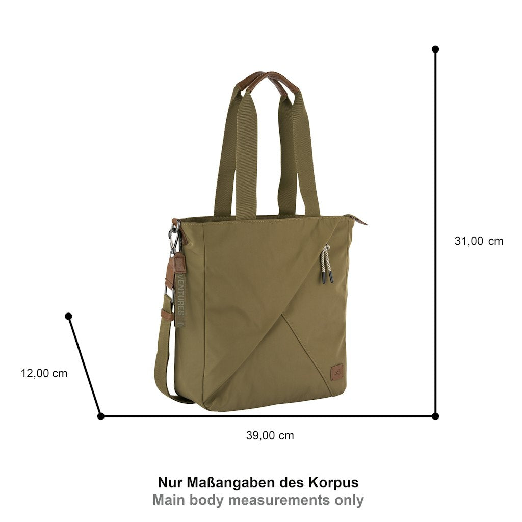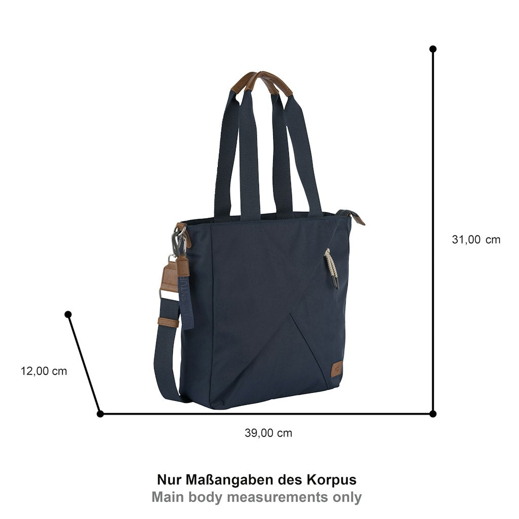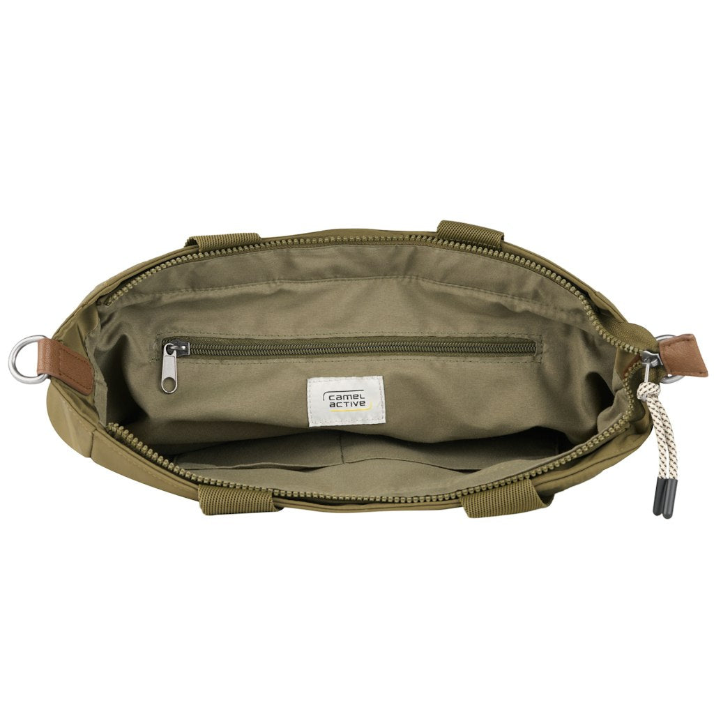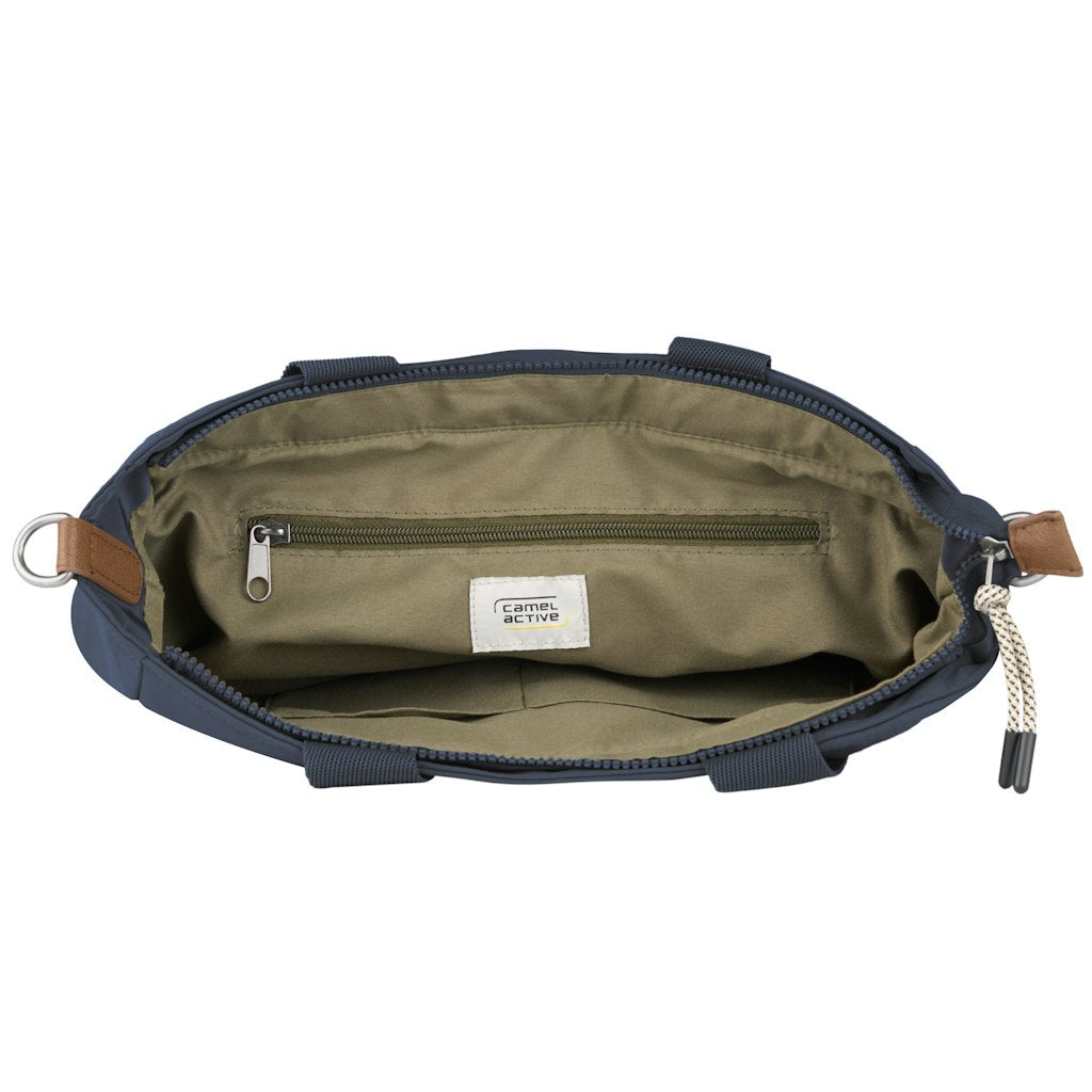 A Camel Active Aurum tote bag a modern városi életstílus praktikus és stílusos kiegészítője. Könnyű, mégis kifejezetten erős újrahasznosított nylonból készült, karakteres fém elemekkel és széles hevederekkel kiegészítve. Tágas belterével és jól átgondolt zsebelosztásával ideális választás munkába, bevásárláshoz, városi programokhoz vagy akár utazáshoz. Letisztult, mégis egyedi megjelenésével minden alkalomhoz illik.