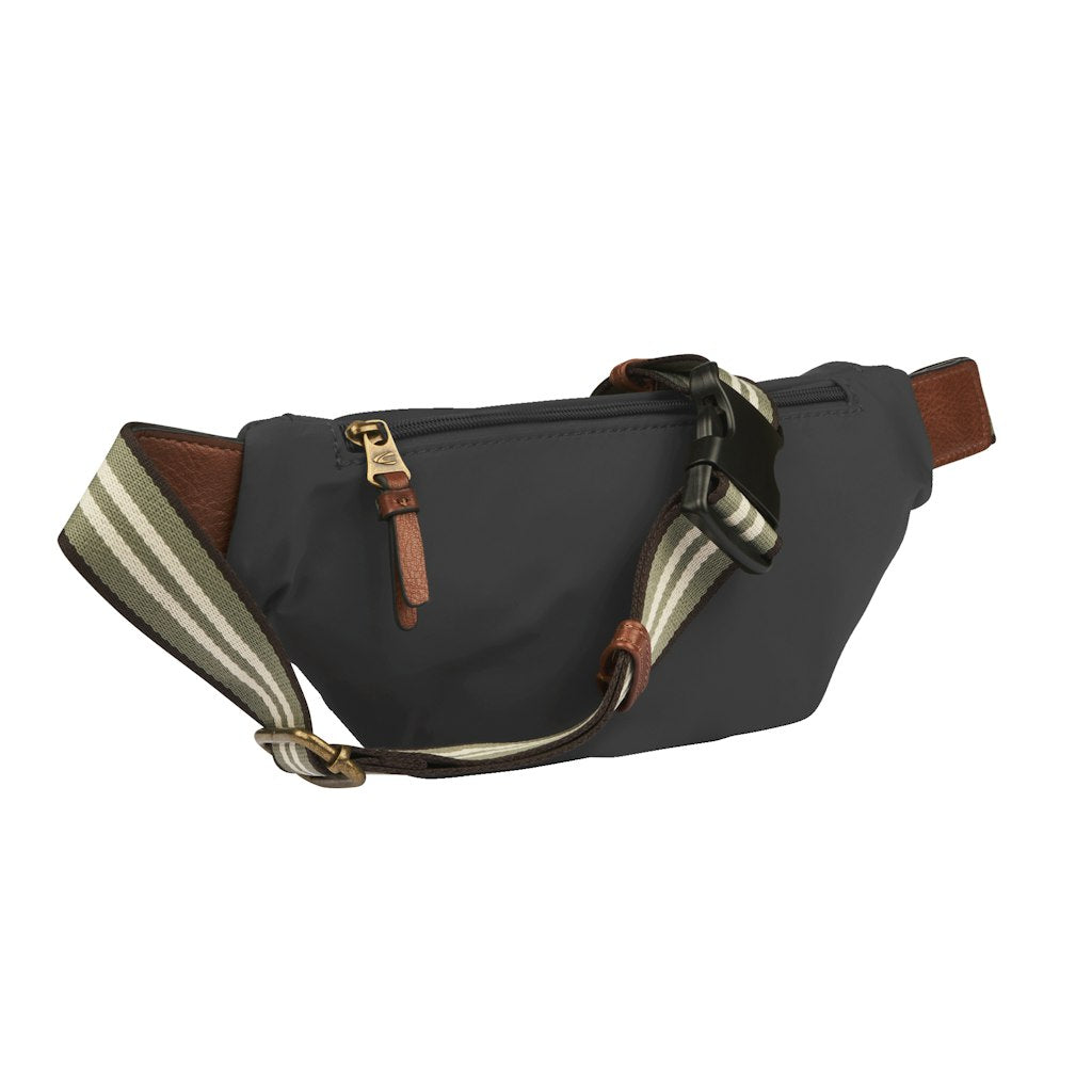 A csíkozott, állítható pánt erős csattal záródik, így a táska könnyedén hordható derékon vagy keresztben a testen. A kiváló anyaghasználat és a precíz varrás hosszú élettartamot garantál, miközben megőrzi könnyű súlyát és kényelmes hordhatóságát.
