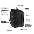• Két fő rekesz és több belső zseb (cipzáras, hálós, telefontartó, rendszerező) az átlátható pakolásért