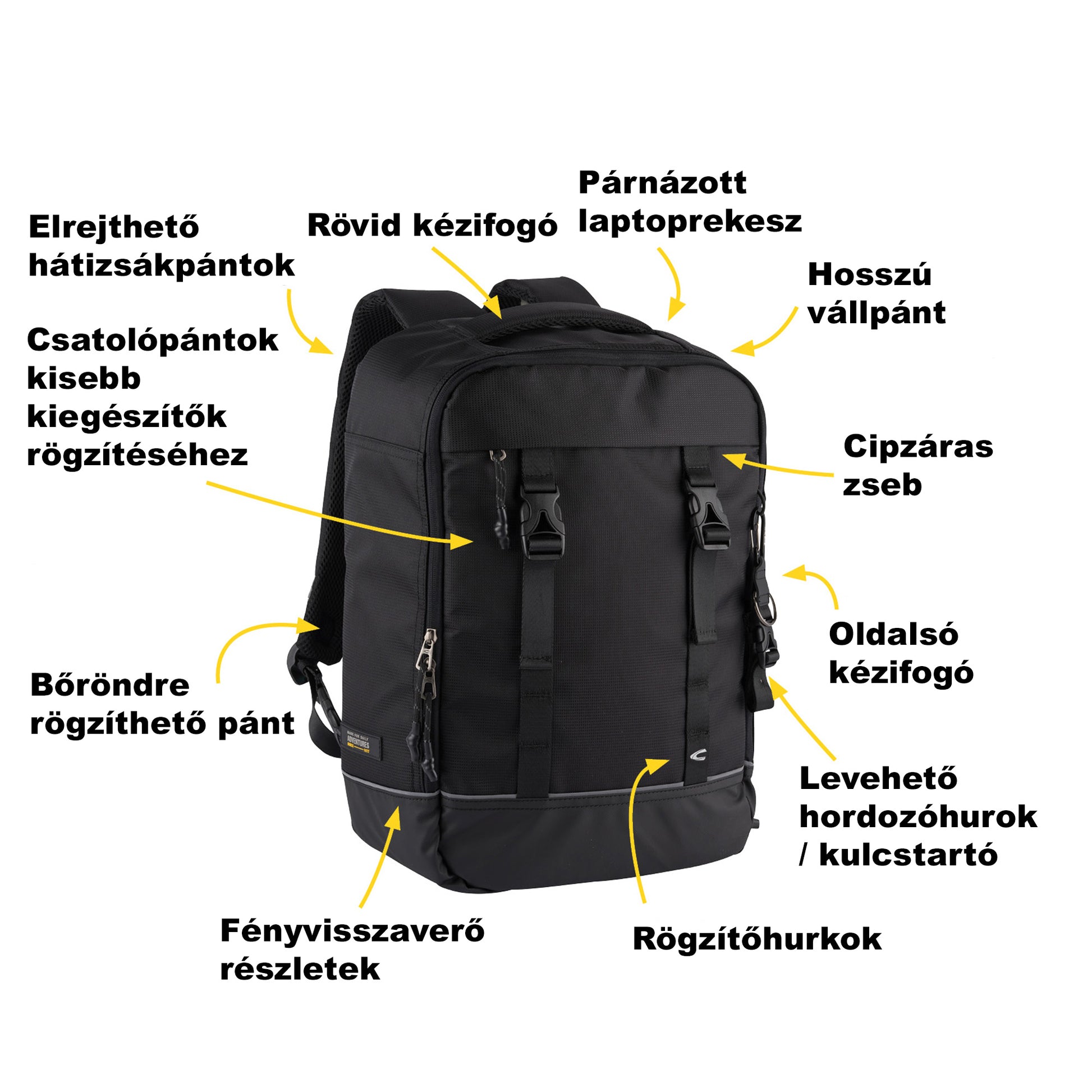 A Camel Active Connect kollekció egyik legnagyobb előnye az egymáshoz csatlakoztatható kialakítás. Az elülső csatolópántok és rögzítőhurkok segítségével kisebb táskákat, kiegészítőket vagy akár sportfelszerelést is könnyedén rögzíthetsz. Így a hátizsák mindig az aktuális programhoz igazítható – legyen szó munkáról, utazásról vagy szabadidős tevékenységről.