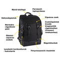 A két fő rekesz (laptop rekezs és nagykapacitású rekesz) és a többféle belső zseb segít rendben tartani a laptopot, dokumentumokat és személyes tárgyakat. A vízlepergető, könnyen tisztítható külső anyag védi a tartalmat a mindennapi használat során, míg a fényvisszaverő részletek rossz fényviszonyok között is növelik a láthatóságot. A bőröndre rögzíthető pánt pedig megkönnyíti a közlekedést utazások alkalmával.