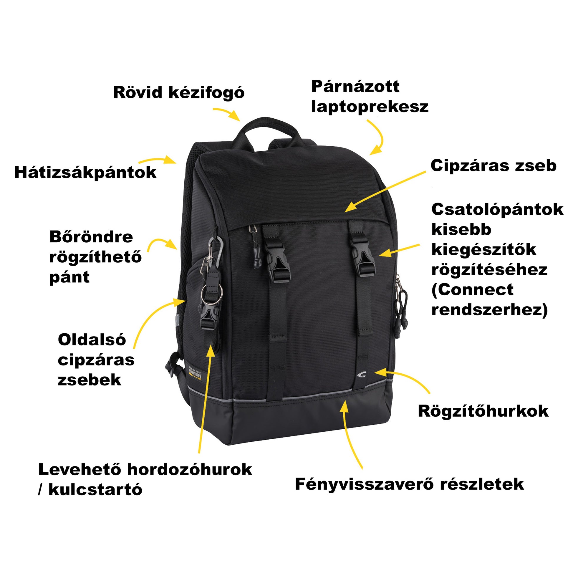 A Camel Active Connect hátizsák, M ideális választás mindennapi használatra, munkába járáshoz és utazáshoz. A kb. 19 literes kapacitás elegendő helyet biztosít a szükséges felszereléseknek, miközben a letisztult, modern megjelenés bármilyen környezetben megállja a helyét. A Connect kollekció moduláris rendszere lehetővé teszi, hogy más kompatibilis táskákkal kombináld, így maximálisan a saját igényeidhez igazíthatod. Vízlepergető anyagai és fényvisszaverő részletei a praktikum és a biztonság szempontjából is előnyt jelentenek.