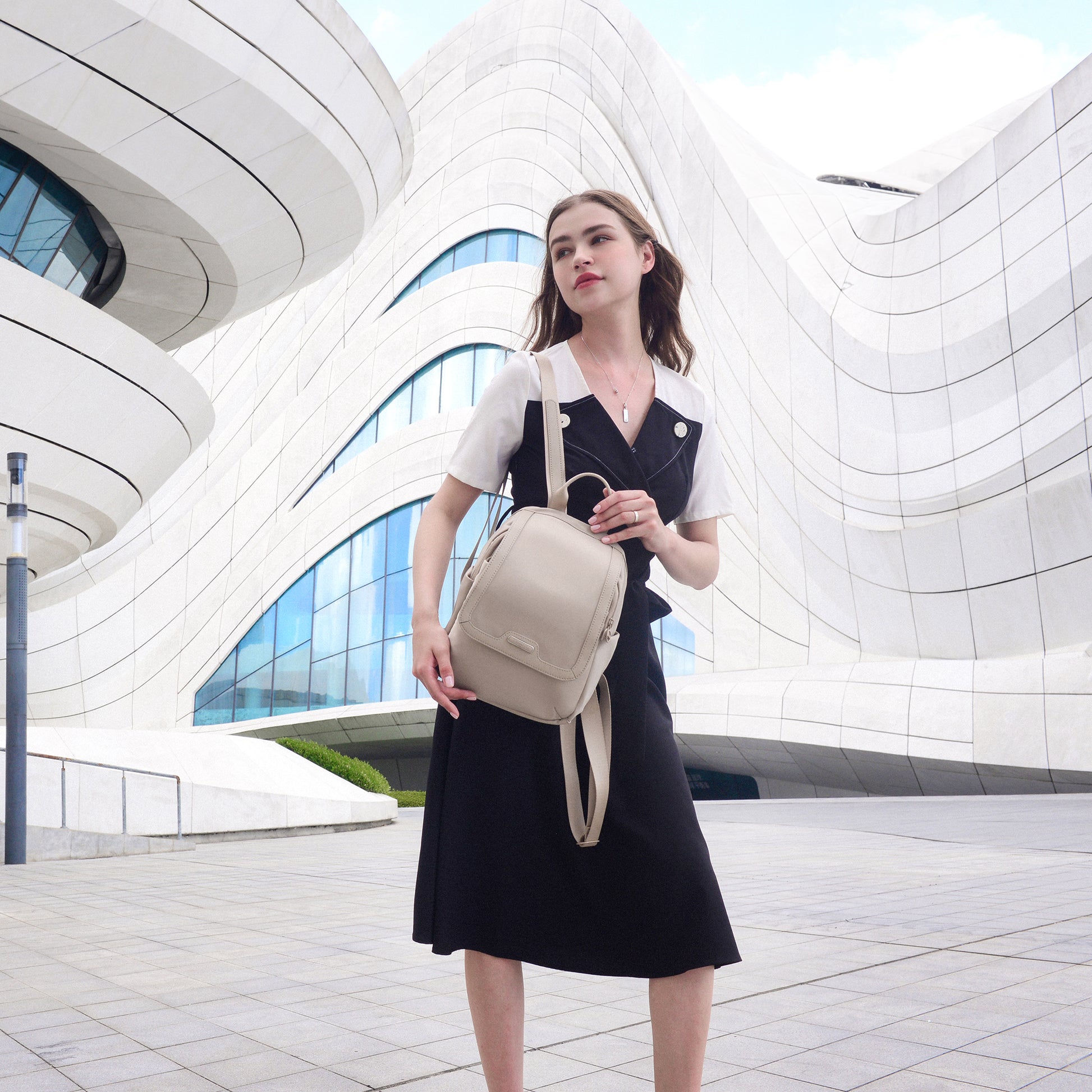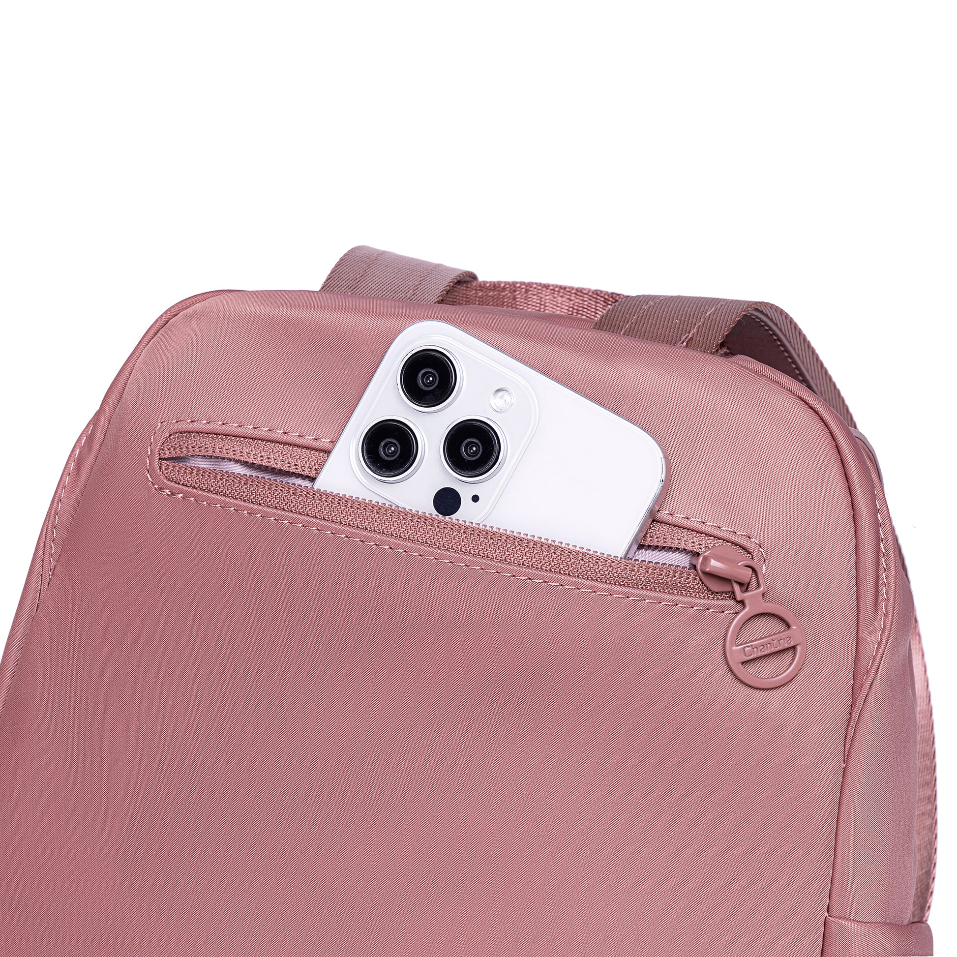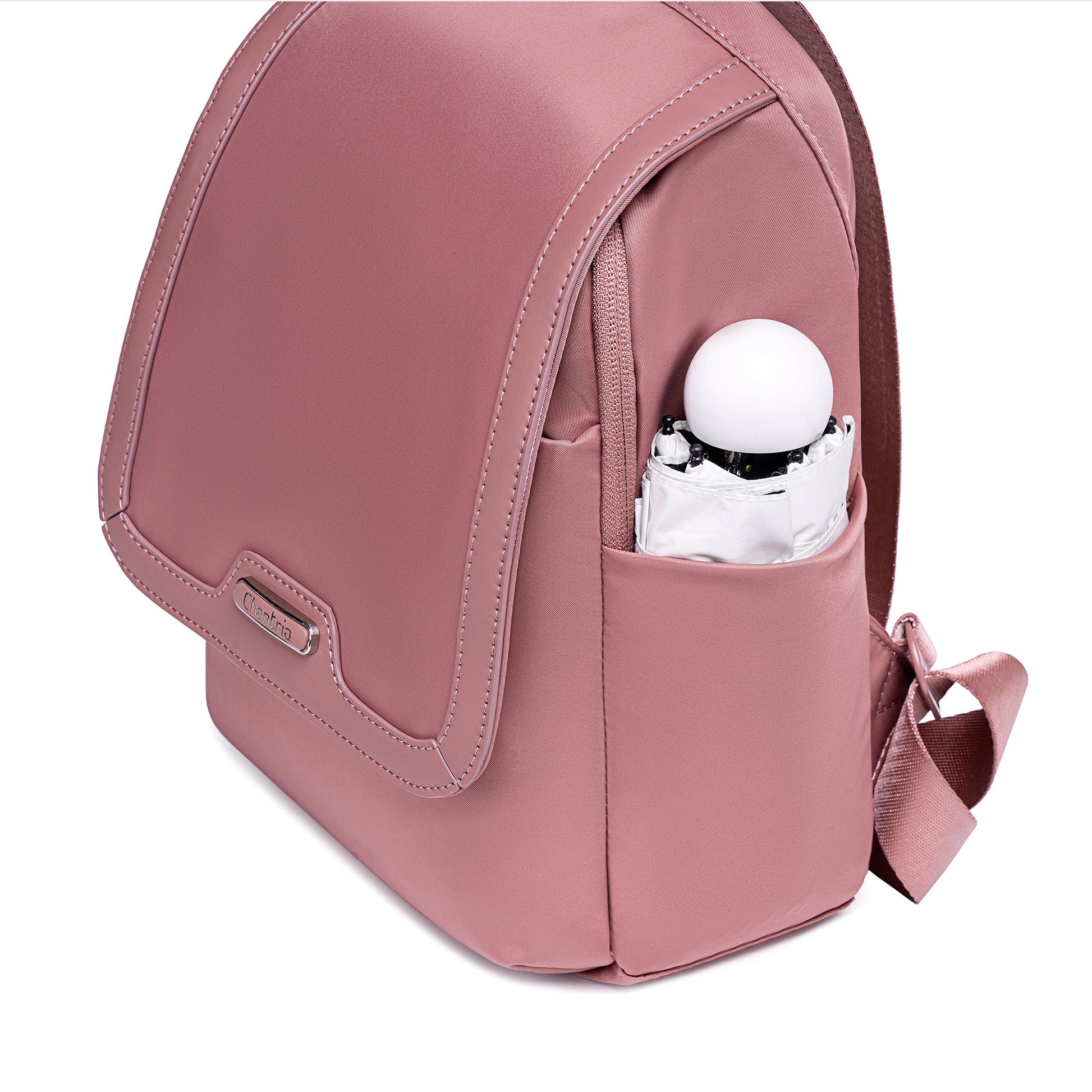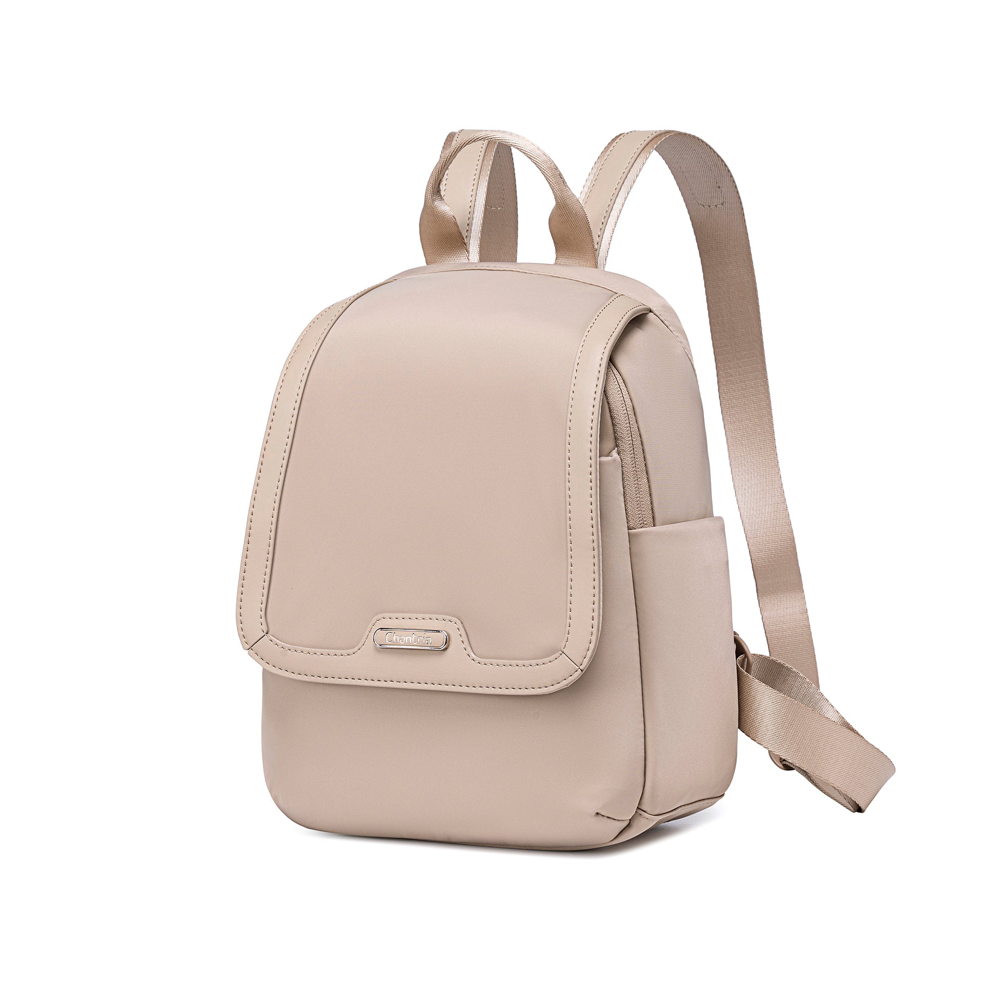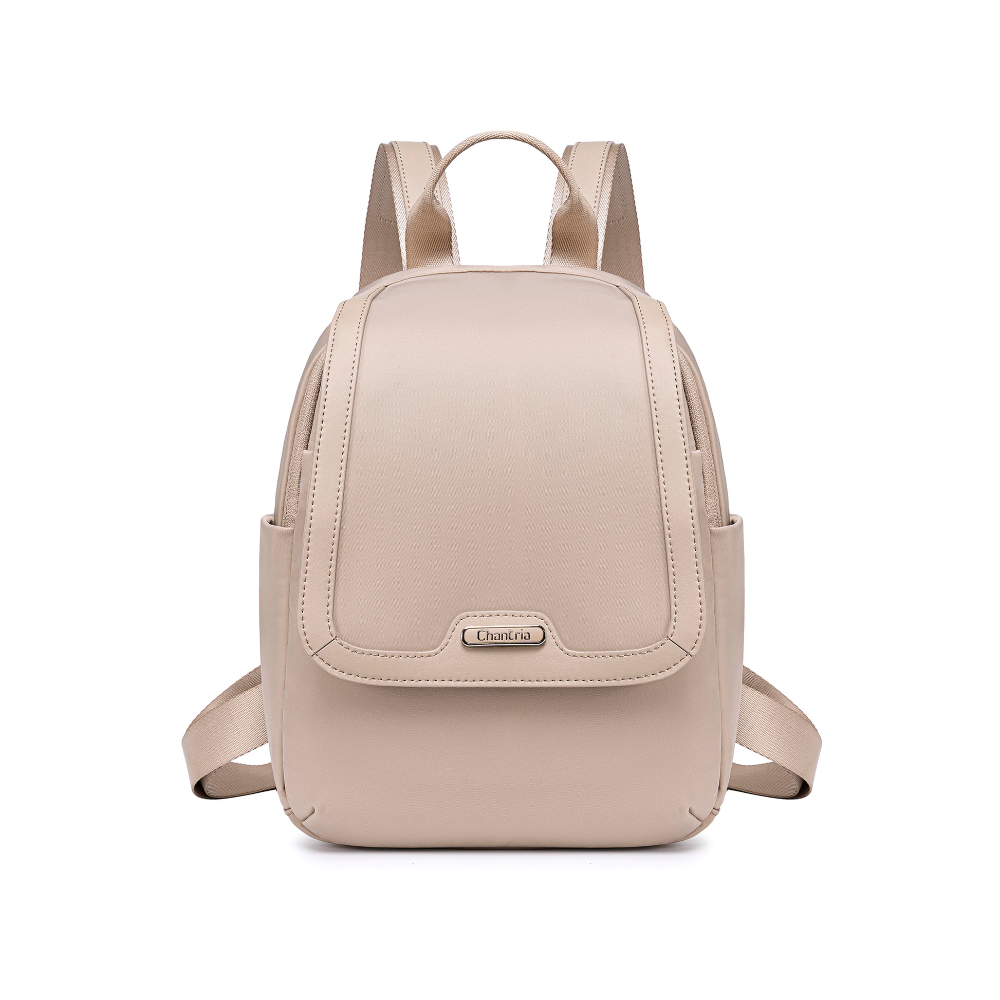 A Chantria Mirea hátizsák a minimalista elegancia mintája: letisztult, íves fedéllel készült, amely modern és kifinomult hatást kelt. A külső felület vízlepergető nylonból készült, ami könnyű, mégis rendkívül tartós – üdítő esőben, városi rohanásban és utazás közben is helytáll.