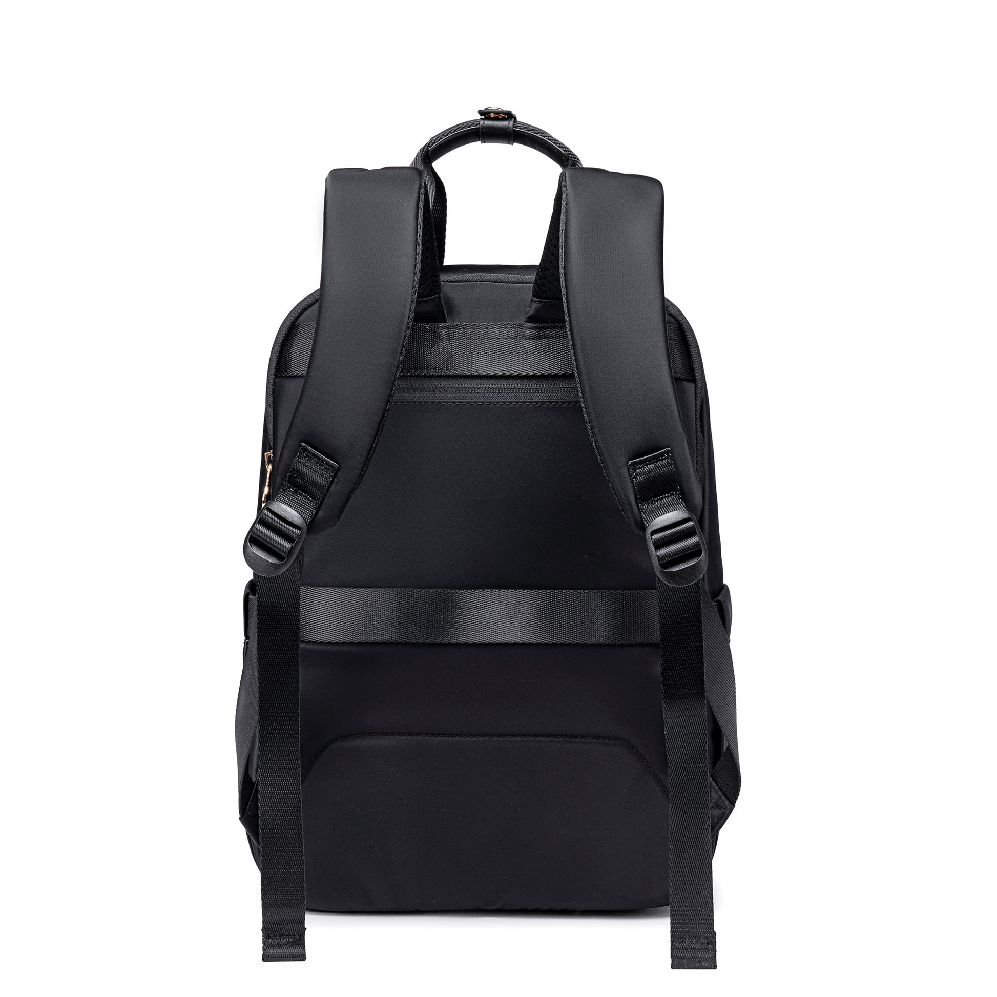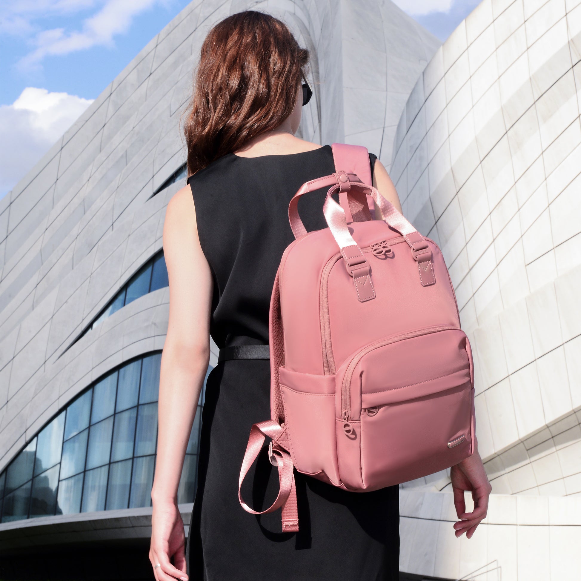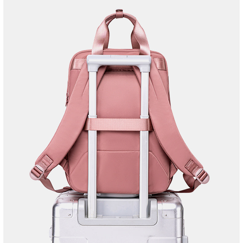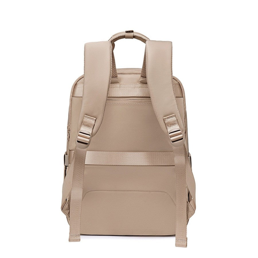 A hátoldalon található bőröndre rögzíthető pánt különösen praktikus utazások során. Segítségével a hátizsák stabilan a gurulós bőrönd fogantyújára csúsztatható, így a repülőtéri vagy vasúti közlekedés is kényelmesebbé válik. A hátsó cipzáras zseb pedig biztonságos helyet kínál az értékek számára.