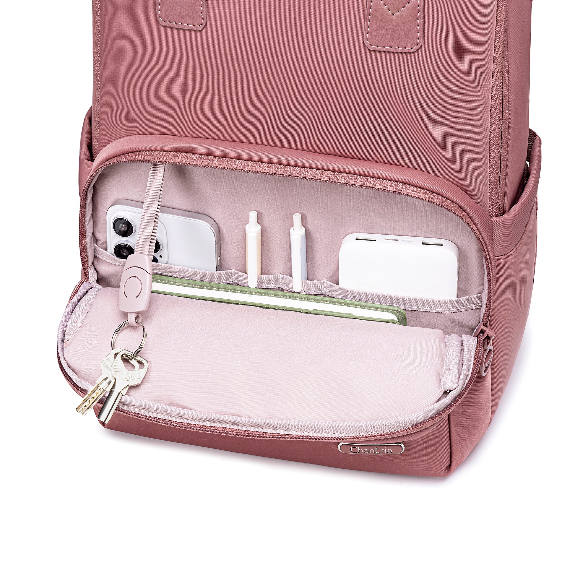 • Átgondolt rendszerezés – a nagy első zsebben két belső zseb, két tolltartó és egy lecsatolható kulcstartó segíti a kisebb tárgyak rendszerezett tárolását.