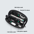 Az egyik oldalon 2 db, a másik oldalon 3 db hálós zseb segíti az átlátható pakolást. Az elválasztón 3 db gumis rögzítő található, amelyek megtartják a kábeleket, pendrive-okat vagy kisebb adaptereket – így nem csúszkálnak, nem gubancolódnak.