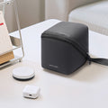 Kompakt kocka forma – 12×12×12 cm-es méret, kézreálló foggantyúval a könnyű hordozáshoz.